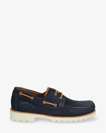 Men's boot shoes. WATERPROOF Navy Nobuck Leather. Lace-up Closure. Leather lining. Removable anatomical insole. Lightweight, flexible and strong EVA rubber sole. Heel height: 4 cm. 100% Made in Spain.