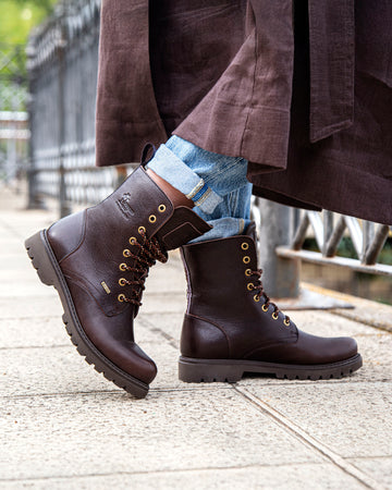 Flat women's Boot. WATERPROOF Brown Napa Leather. Lace-up Closure. Gore-Tex lining. Removable anatomical insole. Natural, flexible and durable rubber sole. Shaft height: 16,5 cm. Heel height: 4 cm. 100% Made in Spain.