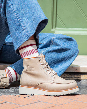 Flat women's ANKLE Boot. WATERPOOF Natural Nobuck Leather. Lace-up Closure. Warm lining. Removable anatomical insole. Lightweight, flexible and strong EVA rubber sole. Shaft height: 11 cm. Heel height: 5.4 cm. 100% Made in Spain.