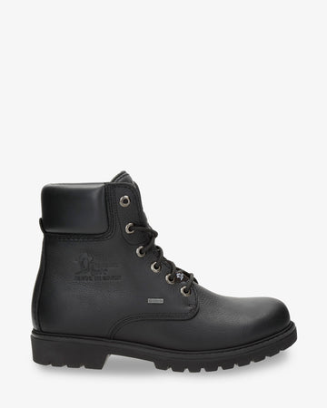 Flat men's Boot. WATERPROOF Black nappa grass leather. Lace-up Closure. Wool Gore-Tex lining. Removable anatomical insole. Natural, flexible and durable rubber sole. Shaft height: 16 cm. Heel height: 4.5 cm. 100% Made in Spain.