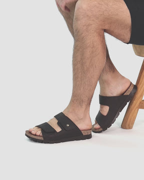 Men's sandals. WATERPROOF Brown nappa grass leather. Velcro Closure. Leather lining. Anatomical insole. Flexible and durable cork and Polyurethane sole. Heel height: 3 cm. 100% Made in Spain.